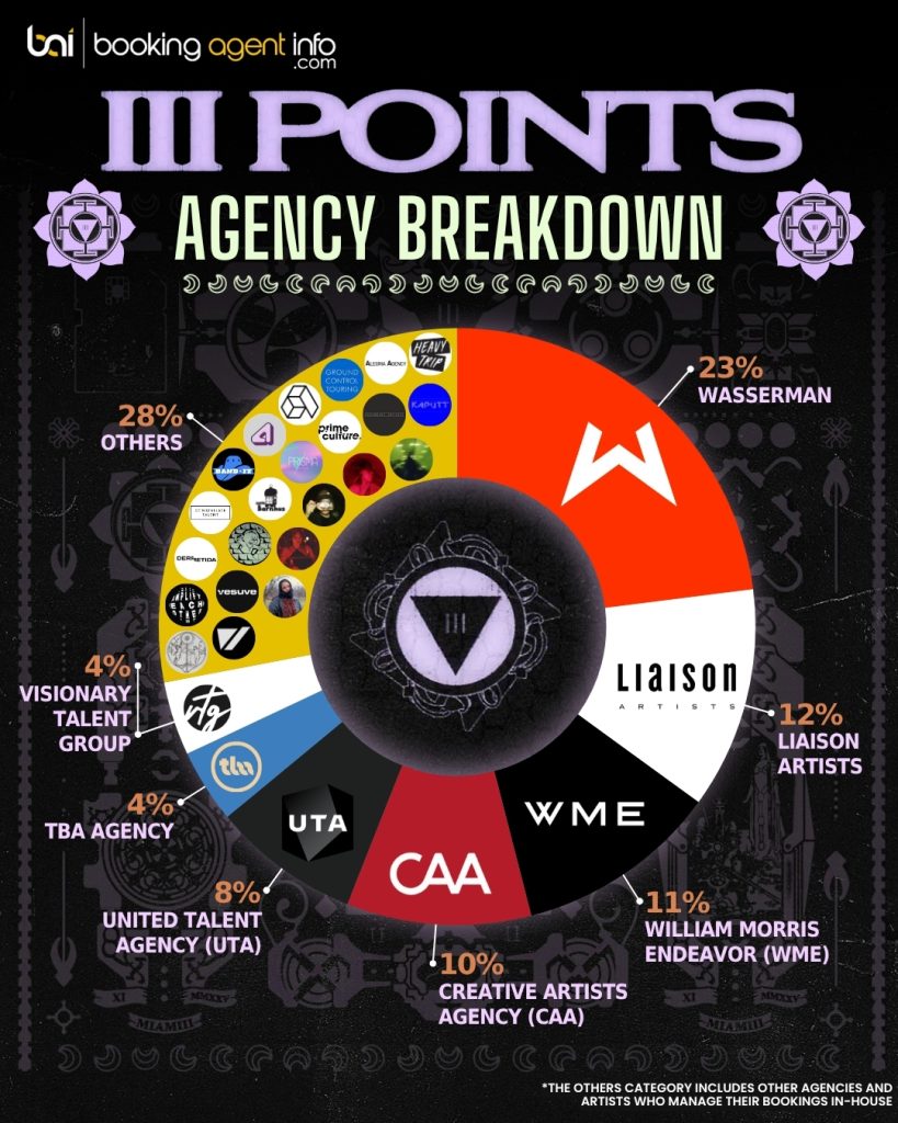 A significant 28% of the lineup is represented by a variety of other agencies and artists who handle bookings in-house.